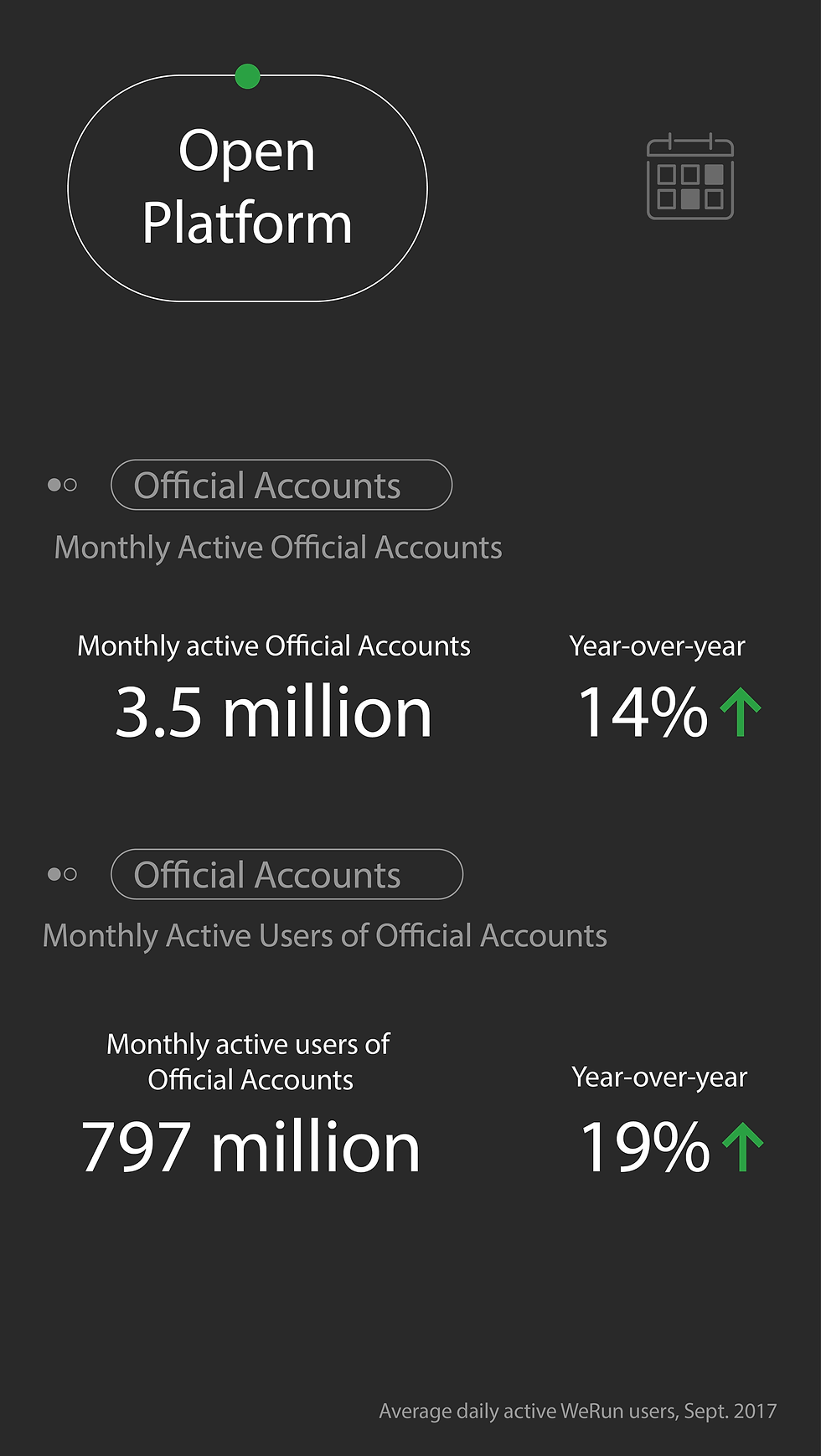 2017 Wechat data reportSocial CloudNov 24, 20171 min read The Tencent Global Partners Conference was held in Chengdu on Nov 9th 2017, at the conference, the WeChat team presented the latest key insights of Wechat. #wechat #statistic #datareport #wechatdatareport #wechatreport #socialmedia #socialmediachina #english
